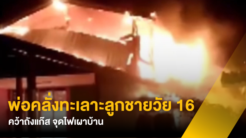 พ่อคลั่ง! ทะเลาะลูกชายวัย 16 คว้าถังแก๊ส จุดไฟเผาบ้าน ล