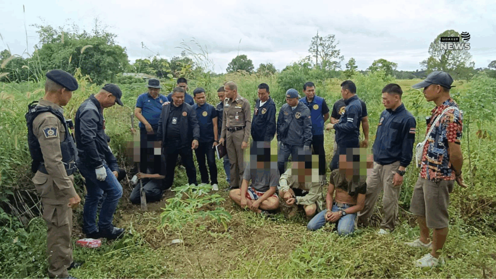 สถานที่จับกุม/ตรวจยึด: บริเวณสวนมันสำปะหลัง หมู่ 4 ตำบลหนองบัวดง อำเภอศิลาลาด จังหวัดศรีสะเกษ
